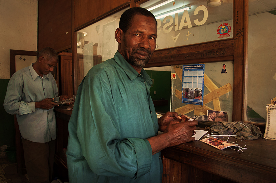En el laboratorio los técnicos cortan las fotos ya positivadas. Tambacounda, Senegal.