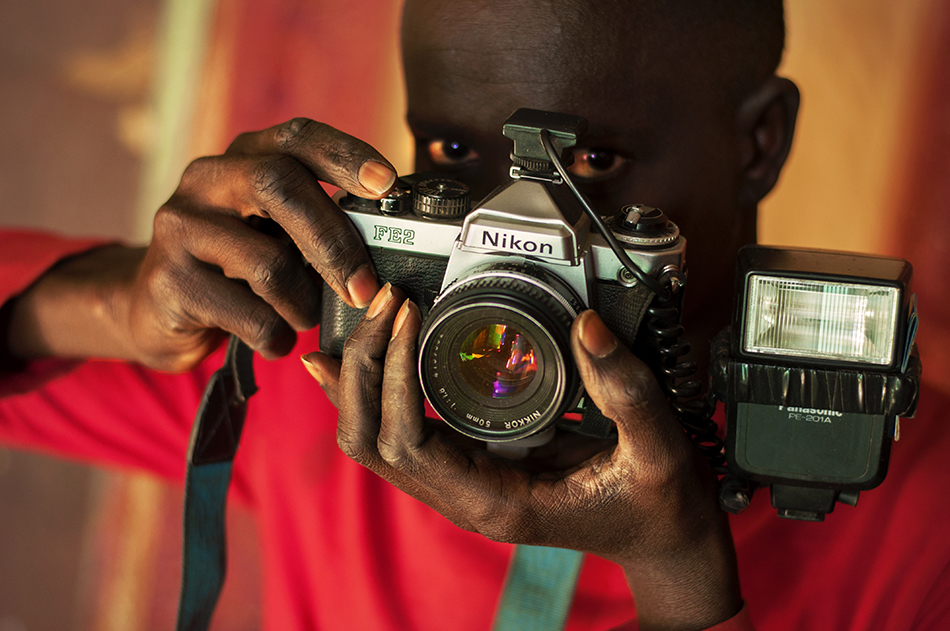 Retrato de un fotógrafo senegalés y su antigua Nikon.