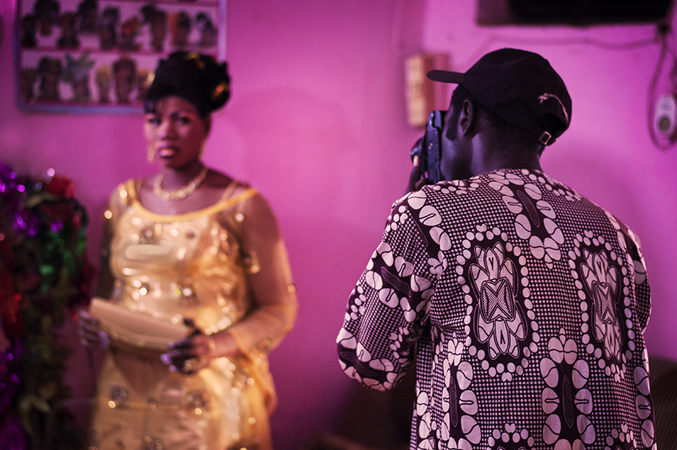 Cuando los fotógrafos están en una boda u otras ceremonias están “en reportage”. Omar toma fotos de la novia en el salón de belleza después de una larga preparación.