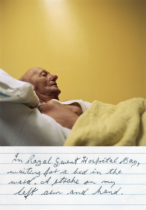 En el Hospital Real Gwent, esperando una cama en la sala. Un derrame en mi brazo y mano izquierda.