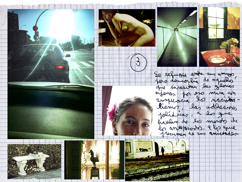 She finds shelter among her friends, but distrusts the people who become parasites of others merits, this is why she feels suspicious of nationalisms, of political adhesions, of those who talk about their ancestors merits, of those others who show their friendships off.