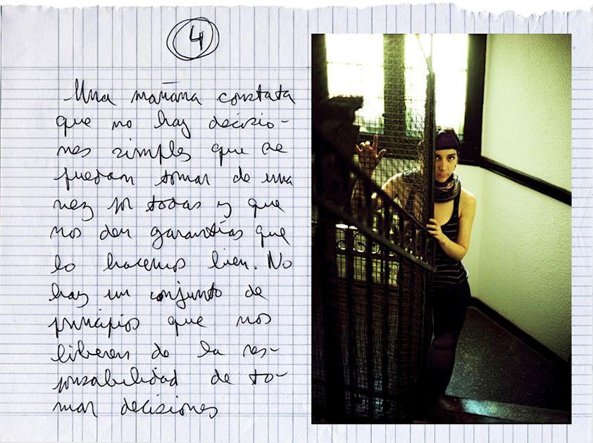 One morning, she realizes that simple decisions made forever do not exist, and that there's never a certainty that we are doing the right thing. There is not a group of principles that set us free from the responsibility of making decisions.