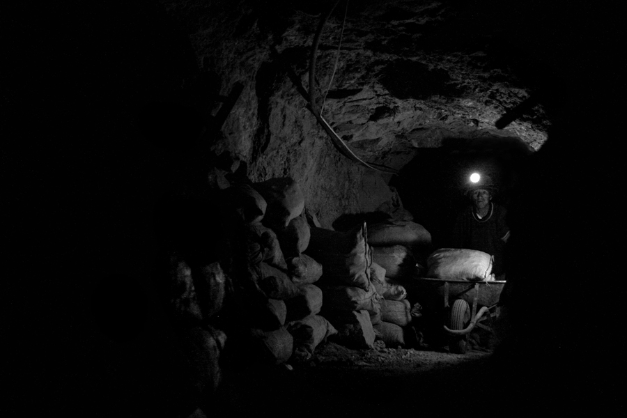 Once the vein is found, the miner frees the mineral to reduce it to pieces that are held in cloth sacks of 25 kilos. These are taken to the cage (elevator) that goes up through the main shaft.