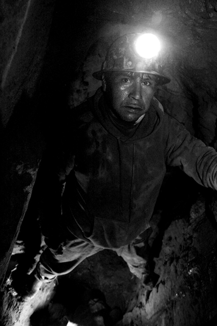 - In a pit of the mine. "What gives us the most value is what we work on in the dark. If I go outside and stand on the border of a ten-story building, I get scared… Don´t you see? Here inside, in the pits, we go up 40 meters as if it were nothing. Why? Because it is dark… I can´t see, further than my little lamp I can´t see. There is no vertigo… Just go up. Most of us miners have that courage inside the mine."