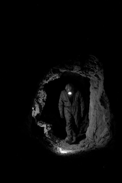- Walking through the corridors of the mine, to the spot or place of extraction. When he walks, the miner doesn´t speak. One can hear his breathing and the sound of his boots stepping on stones to move away from the outside world.